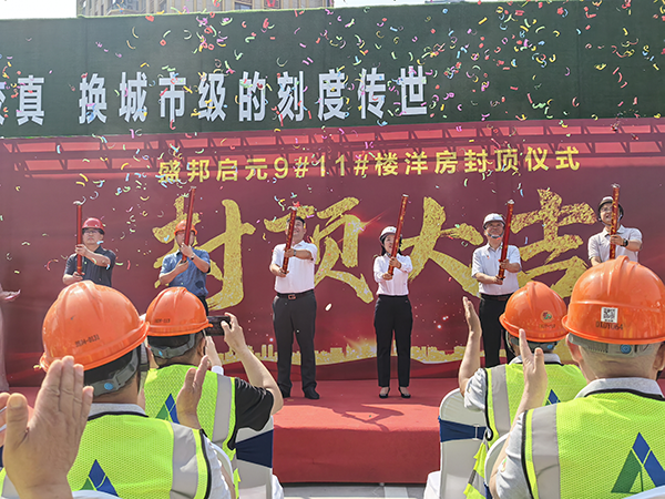 6月18日,第四工程公司承建的高鐵片區商務核心區58號地(簡稱盛邦啟元)項目9號、11號洋房封頂儀式隆重舉行。建設單位、監理單位等主要領導齊聚現場,共同見證這一重要時刻。
