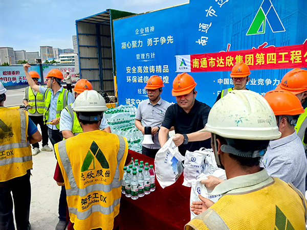 正值盛夏,烈日炎炎,施工現場的工友們不懼高溫,堅守崗位,全力推進項目建設進度。工程公司總經理傅海榮詳細詢問工友們的工作和生活情況,對大家在高溫下辛勤付出表示衷心感謝。隨后,傅海榮親自將精心準備的防暑降溫禮品分發到每一位工友手中,為工友們在炎炎夏日送去一份貼心的關懷。