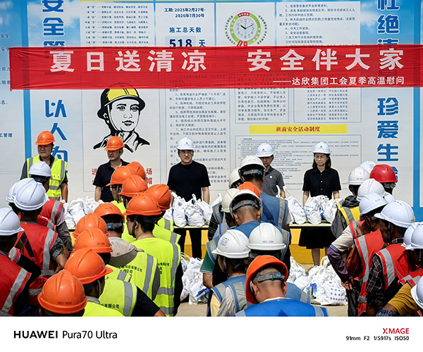 在華潤上海寶山、華潤上海桃浦項目施工現場,集團總經理王邦國向堅守在一線的職工表達了誠摯的敬意和感謝,為大家送上精心準備的“清涼”慰問品。他詢問了項目高溫作業時段安排及防暑降溫措施的落實情況,要求合理安排生產作息時間,科學安排工序,將夏季安全生產的要求落到實處,保障每一位職工的健康與安全。