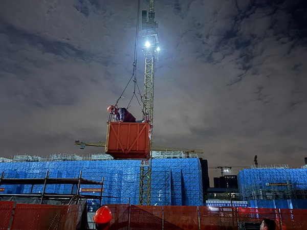 當晚22時30分,項目施工現場已進入夜間停工狀態。塔吊司機在完成工作后,沿塔身爬梯下行時,突然感到手部無力,無法繼續移動,被困在離地面約30米的爬梯中間,停留在休息平臺上。高空環境加上夜間視線受限,司機體力逐漸不支,情況十分危急。